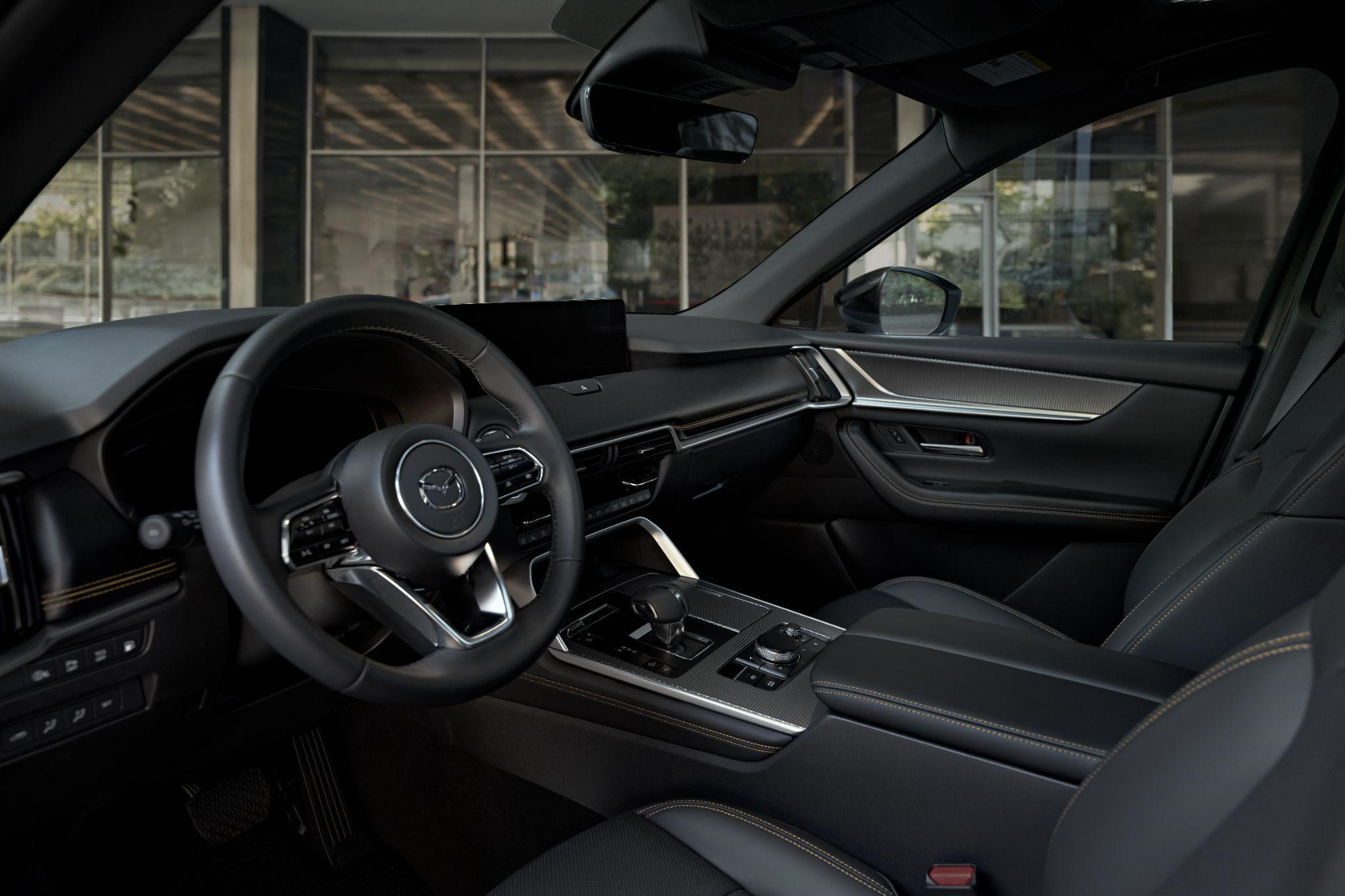 Available features like leather seating, a heated steering wheel, and a panoramic sunroof elevate the interior ambiance to first-class. Whether you're commuting to work or embarking on a family adventure, the CX-70's cabin provides a refined and luxurious space for all occupants.